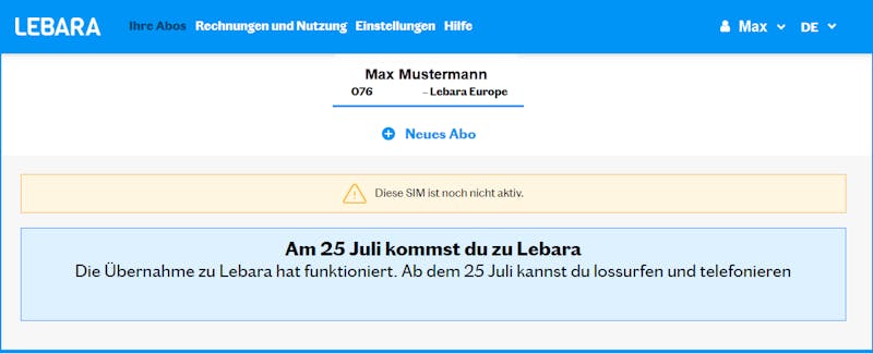 Falls die Übernahme deiner Nummer bereits läuft, kannst du den Status jederzeit in my Lebara überprüfen.