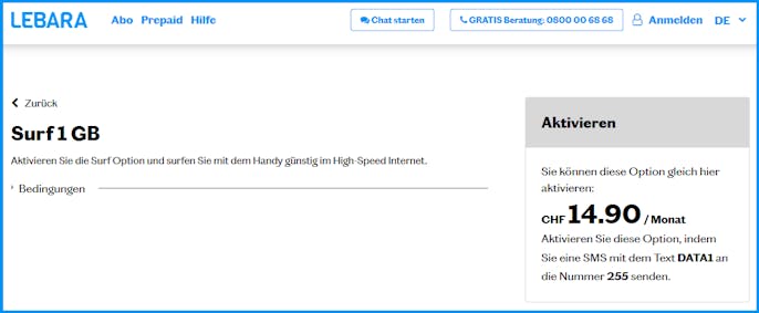Eine Übersicht über die verfügbaren Zusatzpakete findest du hier. Um ein Zusatzpaket zu aktivieren, musst du nur eine SMS schreiben. Klicke dafür auf das jeweilige Angebot und folge den Anweisungen auf der rechten Seite.
