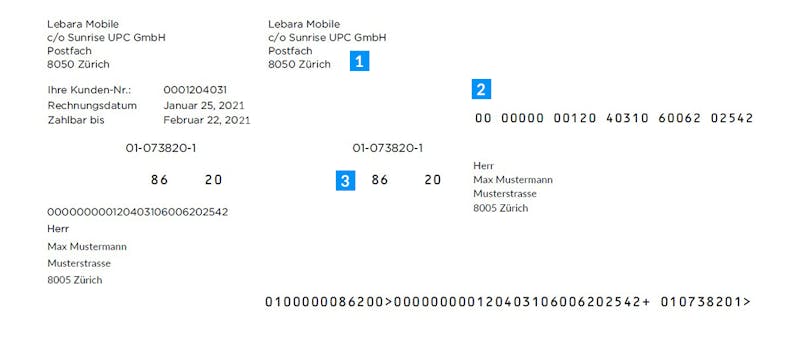 Verwende bei einer Zahlung immer die angegebene IBAN und Referenznummer. Diese sind auf dem originalen orangefarbenen Einzahlungsschein sowie unter my Lebara unter «Rechnungen und Nutzung» ersichtlich. Bei Zahlungen mit dem roten Einzahlungsschein (auch beim Online-Banking) und bei der Post entstehen zusätzliche Bearbeitungskosten, die dir in Rechnung gestellt werden.