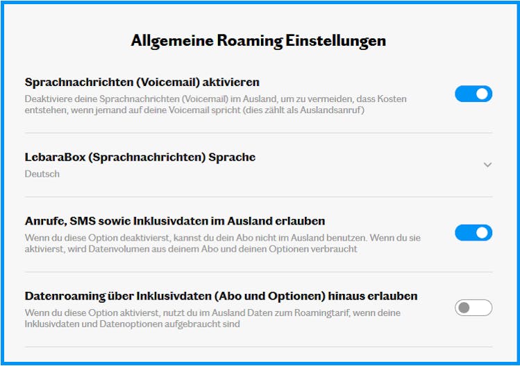 - Blockiere die Datennutzung im Ausland, wenn keine Option oder kein inkludiertes Datenvolumen für Roaming vorhanden ist.
