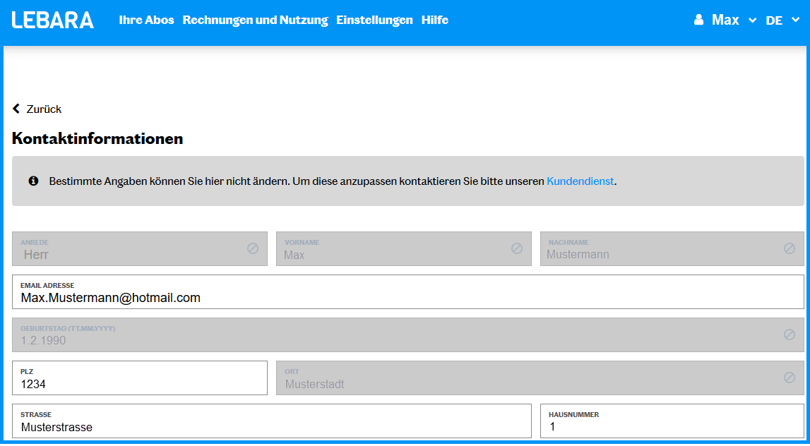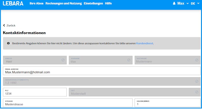 Deine E-Mail-Adresse kannst du ganz einfach in my Lebara unter «Kontaktinformationen» ändern.