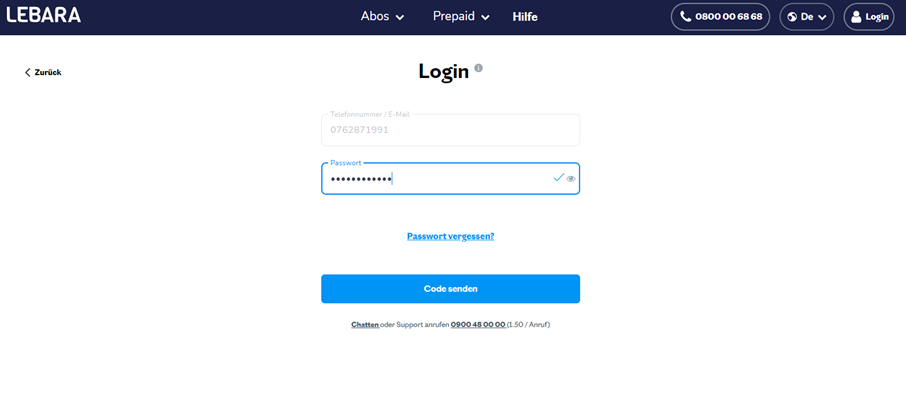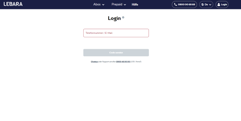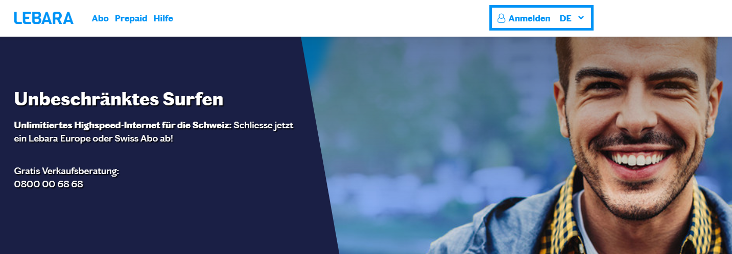 Zum Anmelden in deinem Konto gehe auf die Login-Seite oder auf www.lebara.ch/de und klicke rechts oben auf «Anmelden».
