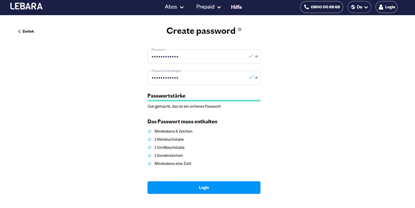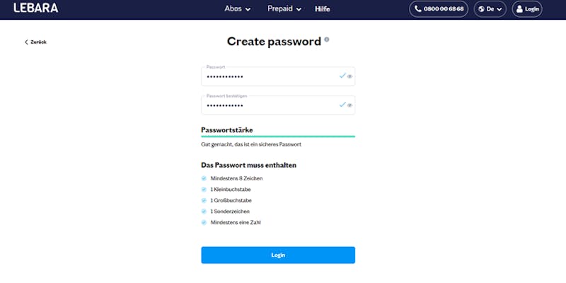 - Das bedeutet, dass die du ein Passwort erstellen musst, das als zusätzliche Sicherheitsebene neben deiner E-Mail-Adresse oder Telefonnummer dient, um my Lebara nutzen zu können.
