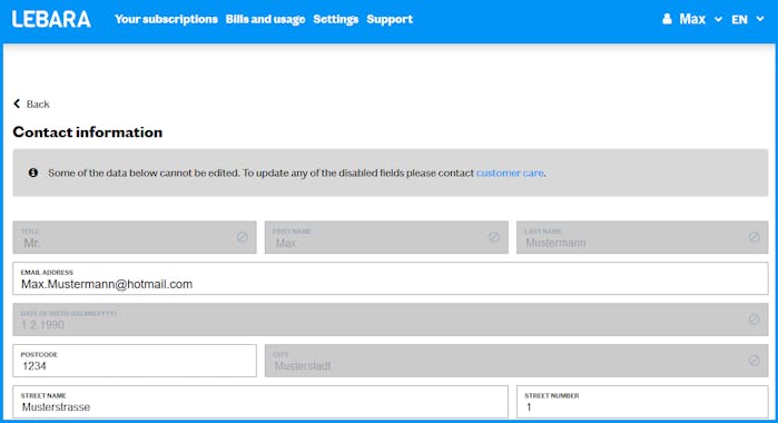 You receive your bills at the address registered in my Lebara under "Contact Information". You can change the address there with a few clicks, no matter if you receive you bills by email or by post. Then you will receive the next bill from us at the new address.