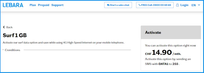 You can find an overview of the available add-on packages here. To activate an add-on package, you only have to send an SMS. To do so, click on the relevant offer and follow the instructions on the right.
