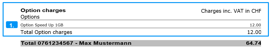 1) Option chargesHere you will see all the options you have additionally booked, such as Speed Up, Travel Surf 100, Travel Talk, etc.