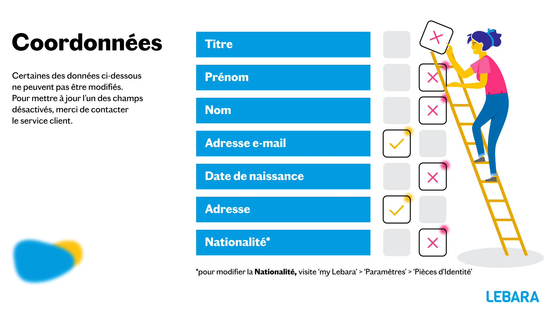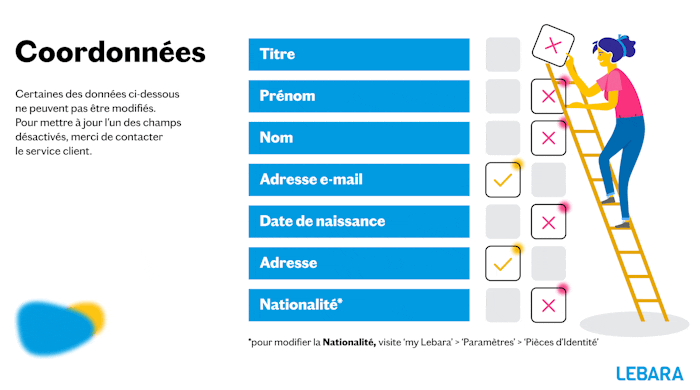 Tu peux modifier tout simplement ton adresse e-mail dans my Lebara, sous «Coordonnées».