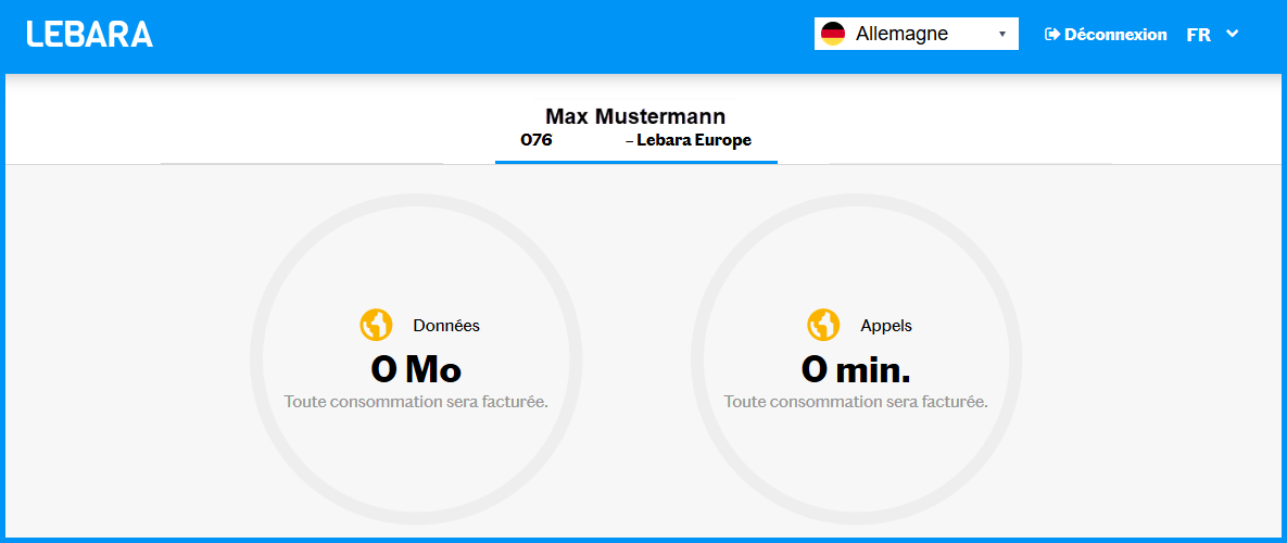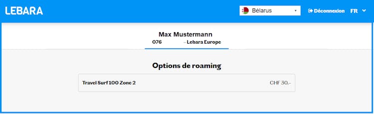 Tu peux voir en tout temps, dans le «Roaming Cockpit» de my Lebara, quelle part du crédit de tes packs de roaming éventuels tu as utilisée, simplement en consultant le pays de destination souhaité. Ton crédit restant s’affichera ensuite, pour chaque pack complémentaire acheté. L’accès est gratuit dans le monde entier.