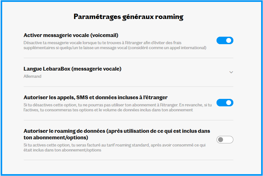 Attention: si tu consultes tes messages vocaux à l’étranger, des frais de roaming te seront facturés.