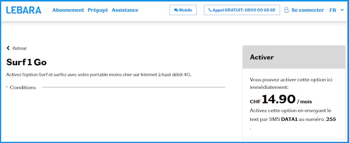 Tu trouveras ici un aperçu des packs complémentaires disponibles. Pour activer un pack complémentaire, il te suffit d’envoyer un SMS. Pour ce faire, clique sur l’offre correspondante et suis les instructions sur la page de droite.