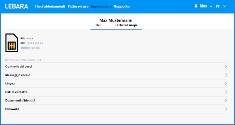Riceverai il codice PIN o PUK insieme alla tua SIM. In alternativa puoi trovare i tuoi dati di sicurezza anche online in my Lebara, sotto «Impostazioni».