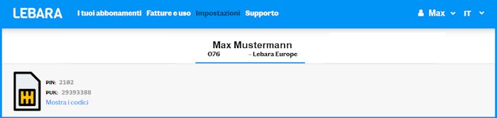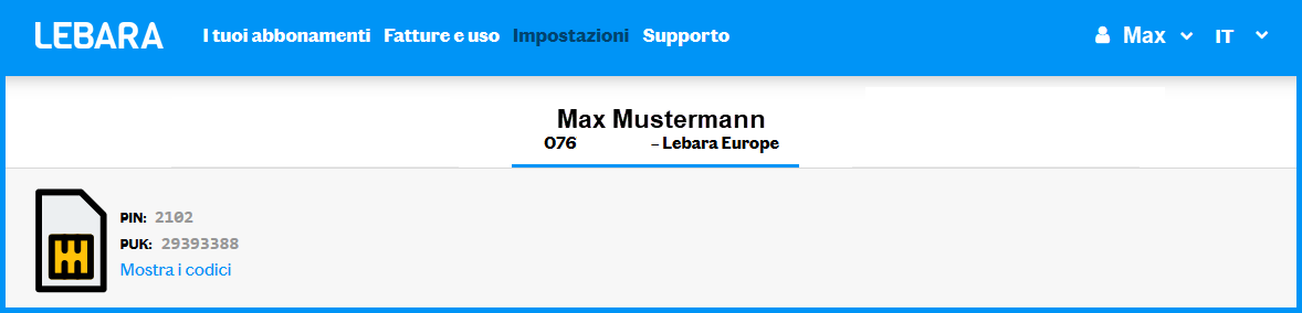 Riceverai il codice PIN o PUK insieme alla tua SIM. In alternativa puoi trovare i tuoi dati di sicurezza anche online in my Lebara, sotto «Impostazioni».