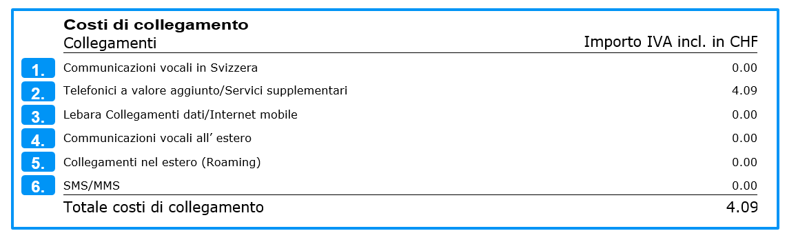 Le chiamate verso numeri a tariffa Premium sono riportate qui: 09xx, 08xx, 084x nonché chiamate al servizio di assistenza clienti e al servizio informazioni. Qui sono inoltre riportati i costi dei servizi «SMS Premium». Ti invitiamo a informarti sempre in anticipo sugli eventuali costi di questi servizi di chiamata e SMS.
