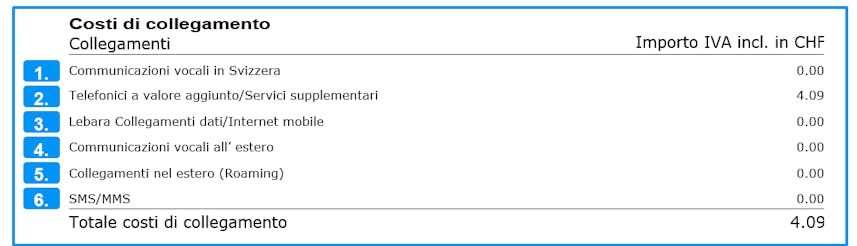 Qui sono riportati tutti gli SMS, le chiamate in entrata e in uscita e i collegamenti dati effettuati all'estero (roaming) e non compresi nel tuo abbonamento di telefonia mobile.