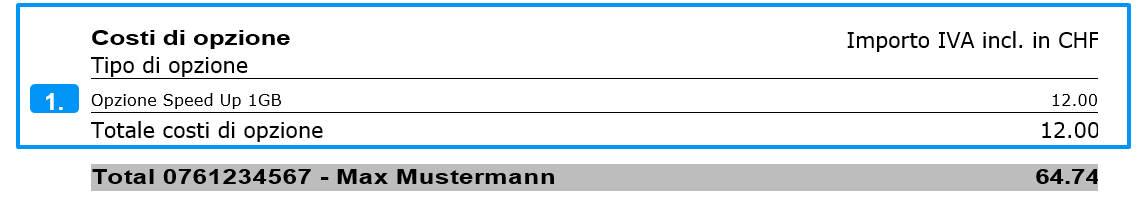 1) Costi di opzioneQuesto articolo include tutti i costi per le opzioni aggiuntive acquistate (dati e roaming).